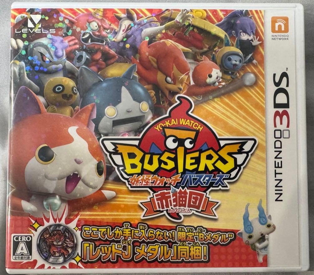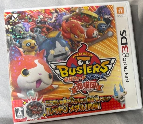 3ds_cart: 妖怪ウォッチバスターズ 赤猫団 (【特典】・レッドJメダル(Bメダル)・赤猫団オリジナルステッカー 同梱) - 3DS_4571237660665 (conf: 0.966)